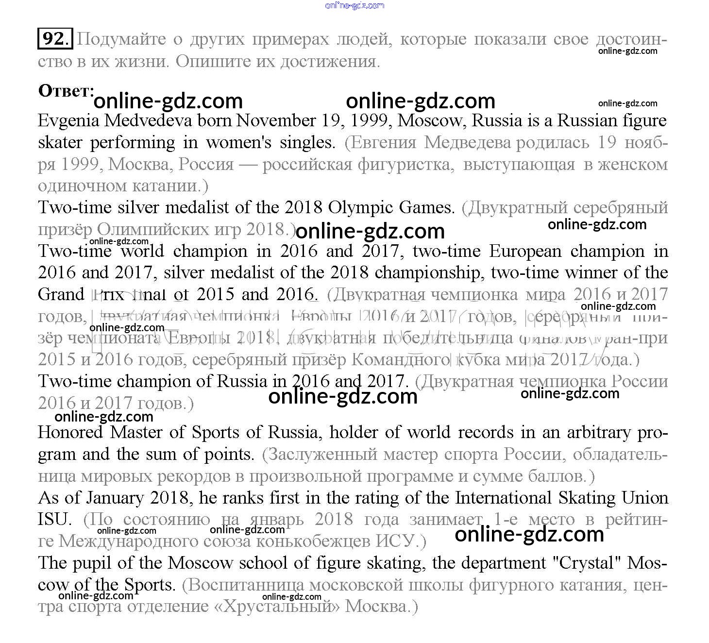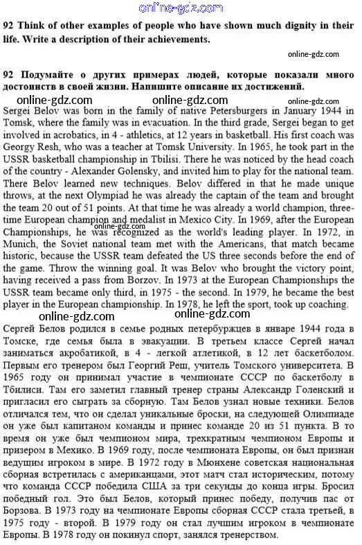 Готовые домашние задания по Английскому языку за 10 класс Учебник Биболетова, Денисенко Enjoy English 2016 - Unit 1. Start anew 92