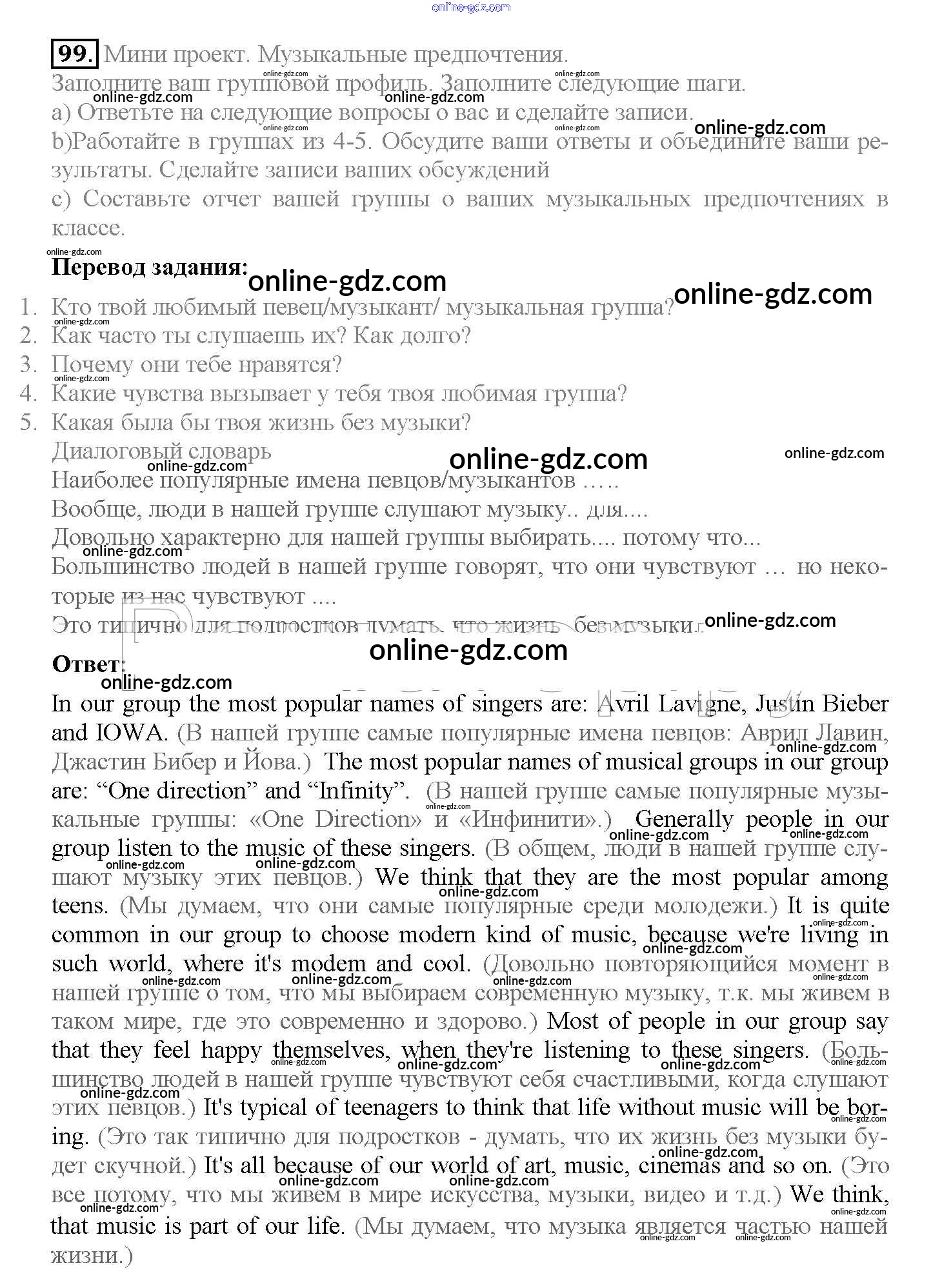 Готовые домашние задания по Английскому языку за 10 класс Учебник Биболетова, Денисенко Enjoy English 2016 - Unit 1. Start anew 99
