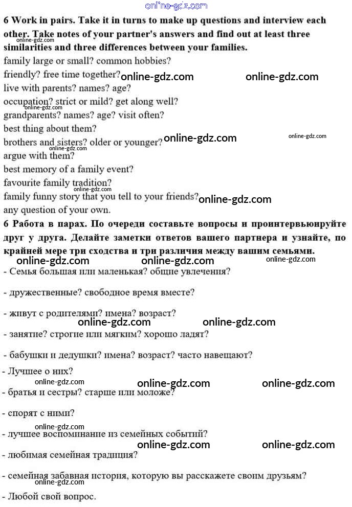 Готовые домашние задания по Английскому языку за 10 класс Учебник Биболетова, Денисенко Enjoy English 2016 - Progress Check Unit 2. Talking on family matters 6