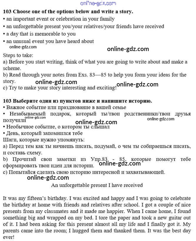 Готовые домашние задания по Английскому языку за 10 класс Учебник Биболетова, Денисенко Enjoy English 2016 - Unit 2. Talking on family matters 103