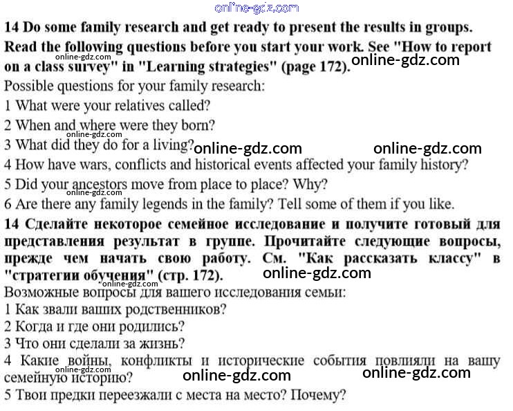 Готовые домашние задания по Английскому языку за 10 класс Учебник Биболетова, Денисенко Enjoy English 2016 - Unit 2. Talking on family matters 14