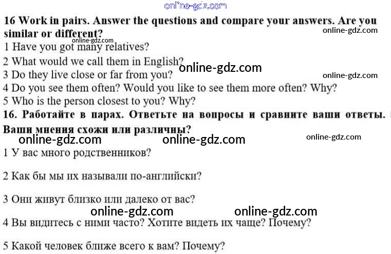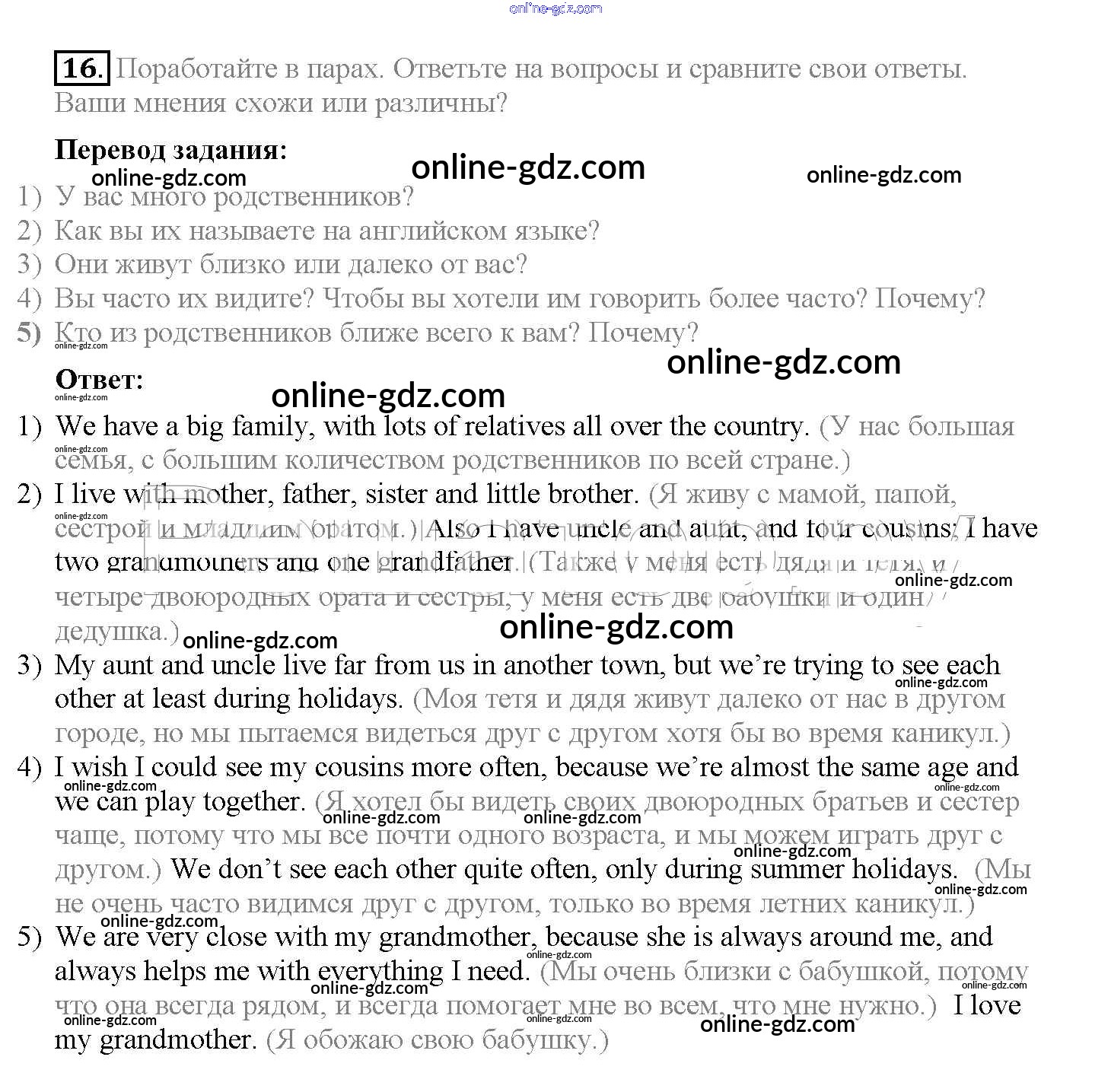 Готовые домашние задания по Английскому языку за 10 класс Учебник Биболетова, Денисенко Enjoy English 2016 - Unit 2. Talking on family matters 16