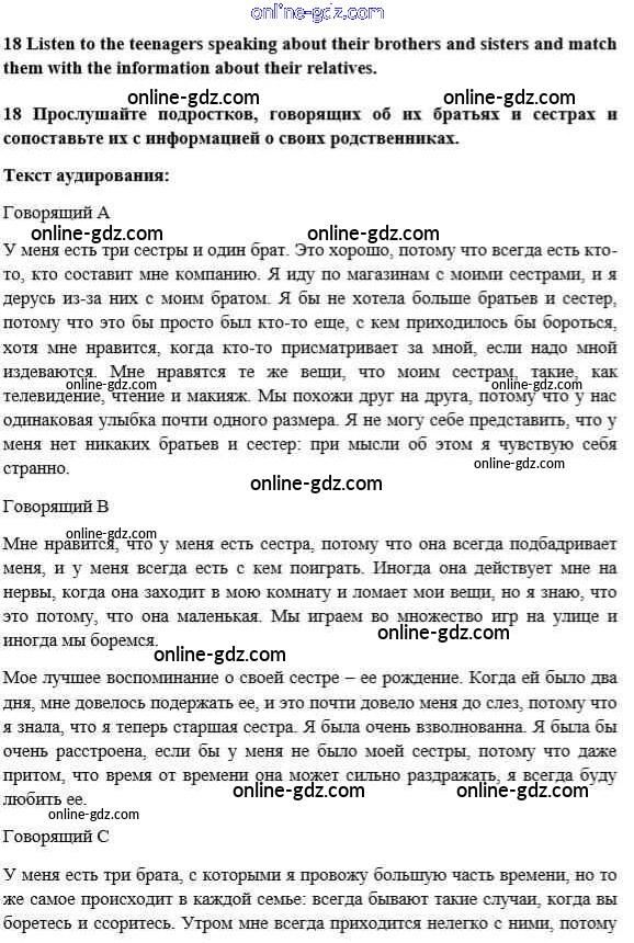Готовые домашние задания по Английскому языку за 10 класс Учебник Биболетова, Денисенко Enjoy English 2016 - Unit 2. Talking on family matters 18