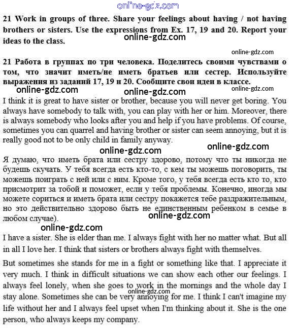 Готовые домашние задания по Английскому языку за 10 класс Учебник Биболетова, Денисенко Enjoy English 2016 - Unit 2. Talking on family matters 21
