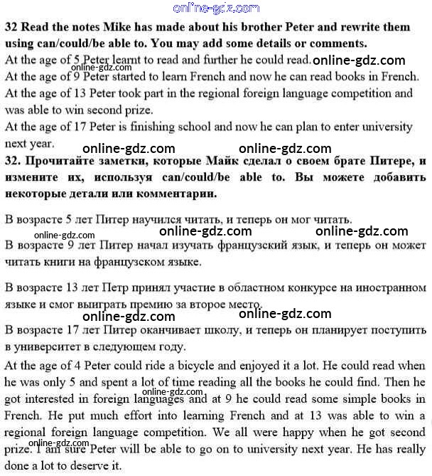 Готовые домашние задания по Английскому языку за 10 класс Учебник Биболетова, Денисенко Enjoy English 2016 - Unit 2. Talking on family matters 32