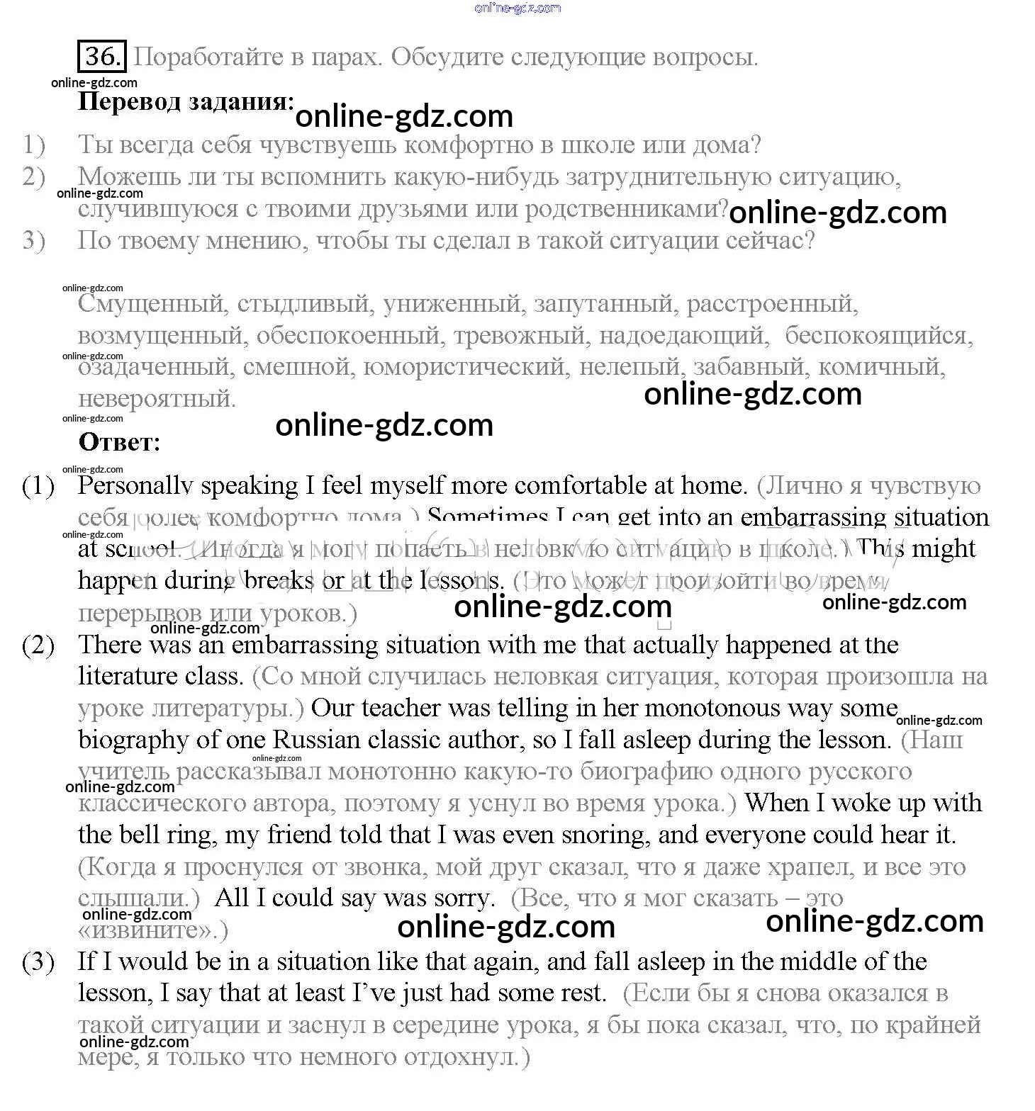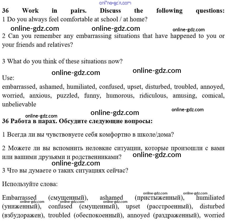 Готовые домашние задания по Английскому языку за 10 класс Учебник Биболетова, Денисенко Enjoy English 2016 - Unit 2. Talking on family matters 36