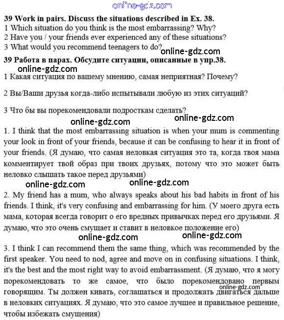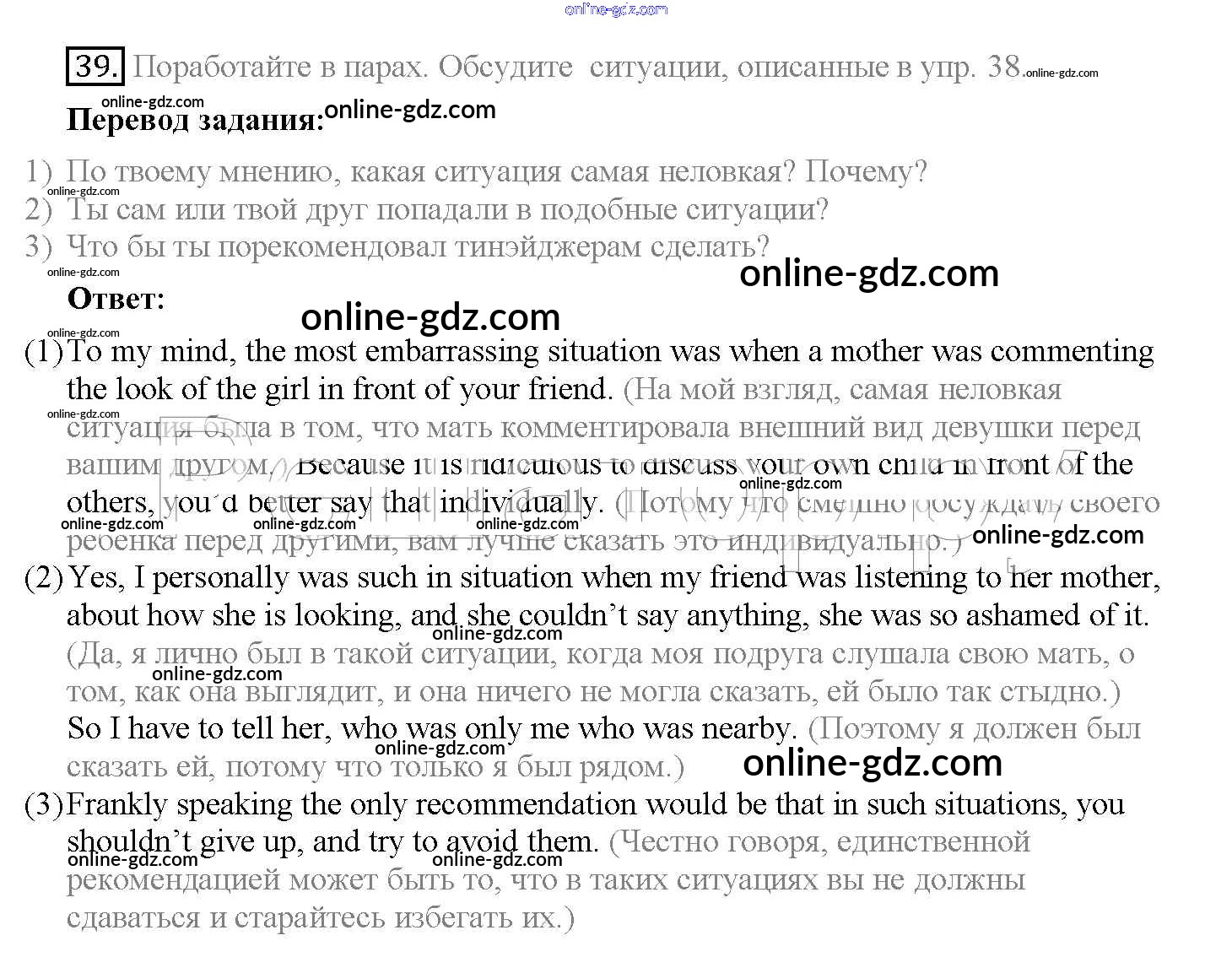 Готовые домашние задания по Английскому языку за 10 класс Учебник Биболетова, Денисенко Enjoy English 2016 - Unit 2. Talking on family matters 39