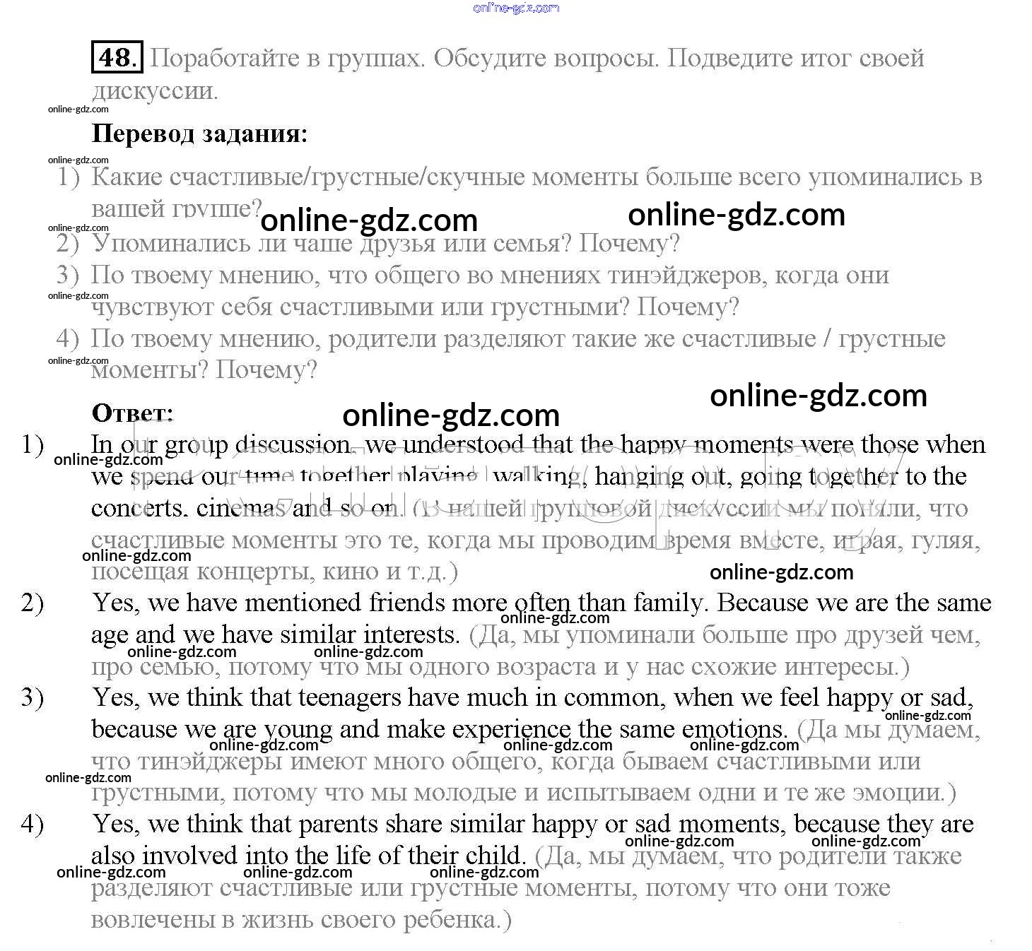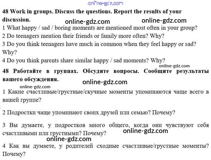 Готовые домашние задания по Английскому языку за 10 класс Учебник Биболетова, Денисенко Enjoy English 2016 - Unit 2. Talking on family matters 48
