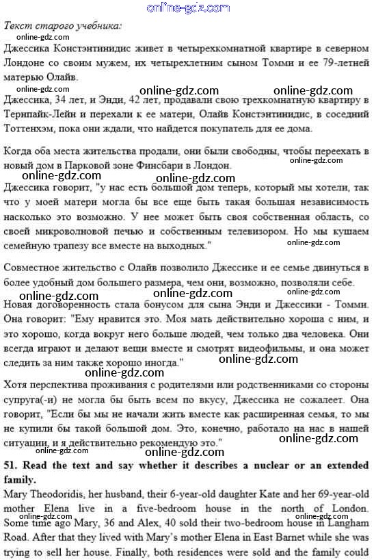 Готовые домашние задания по Английскому языку за 10 класс Учебник Биболетова, Денисенко Enjoy English 2016 - Unit 2. Talking on family matters 51