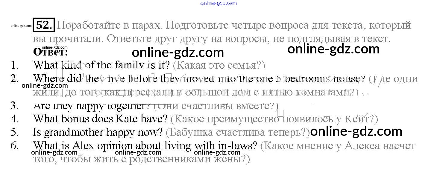 Готовые домашние задания по Английскому языку за 10 класс Учебник Биболетова, Денисенко Enjoy English 2016 - Unit 2. Talking on family matters 52