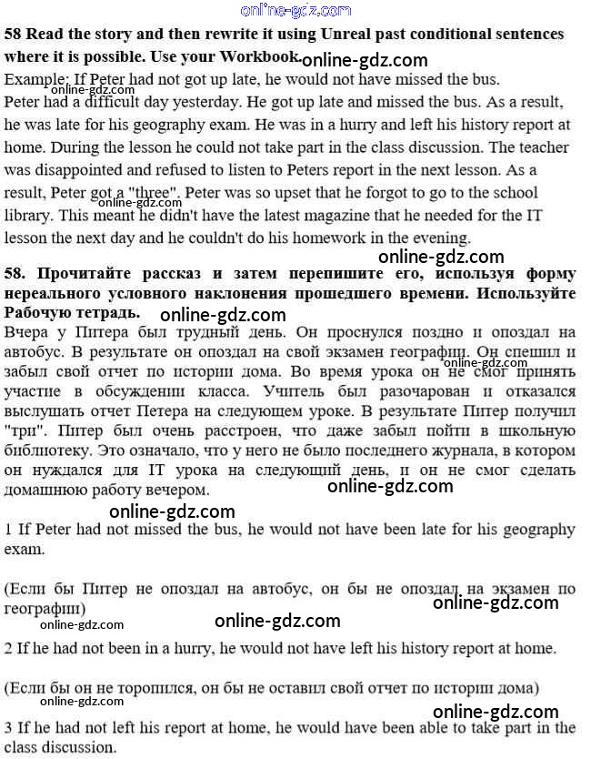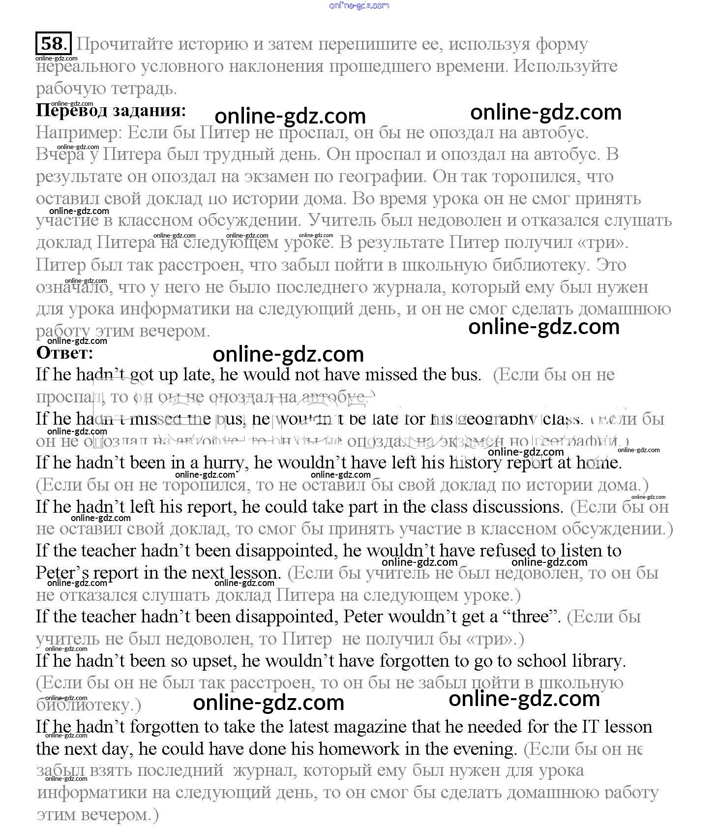Готовые домашние задания по Английскому языку за 10 класс Учебник Биболетова, Денисенко Enjoy English 2016 - Unit 2. Talking on family matters 58