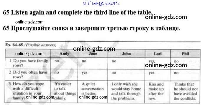 Готовые домашние задания по Английскому языку за 10 класс Учебник Биболетова, Денисенко Enjoy English 2016 - Unit 2. Talking on family matters 65