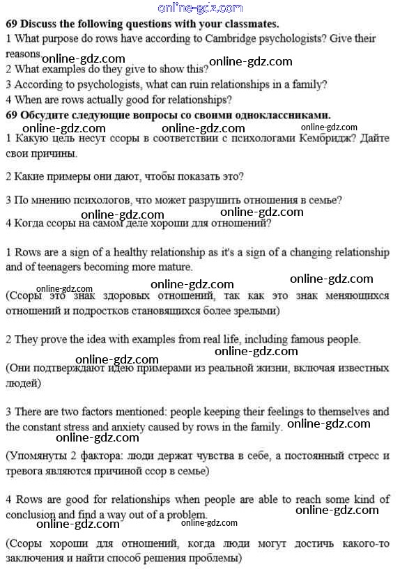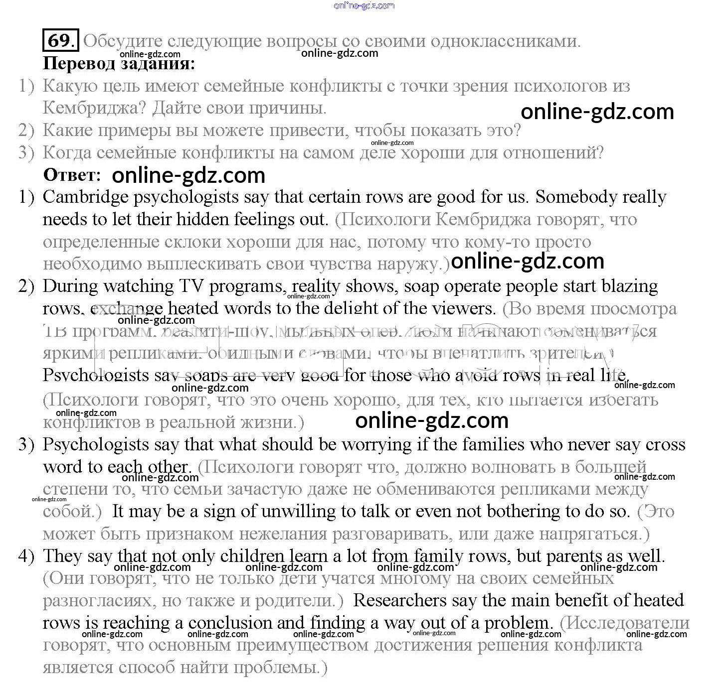 Готовые домашние задания по Английскому языку за 10 класс Учебник Биболетова, Денисенко Enjoy English 2016 - Unit 2. Talking on family matters 69