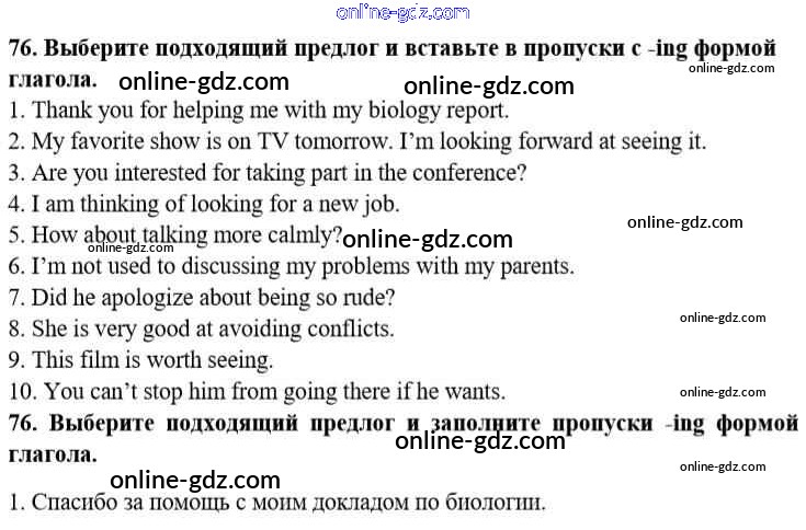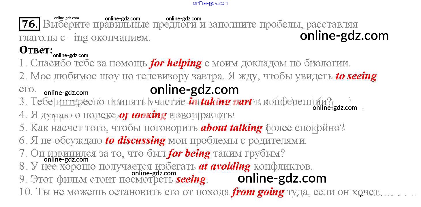 Готовые домашние задания по Английскому языку за 10 класс Учебник Биболетова, Денисенко Enjoy English 2016 - Unit 2. Talking on family matters 76