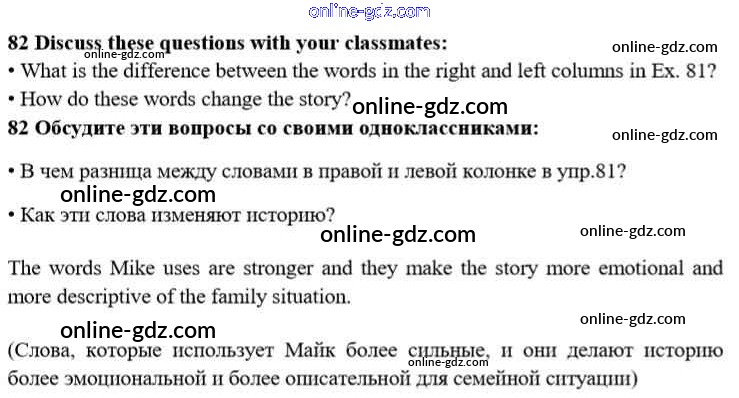 Готовые домашние задания по Английскому языку за 10 класс Учебник Биболетова, Денисенко Enjoy English 2016 - Unit 2. Talking on family matters 82