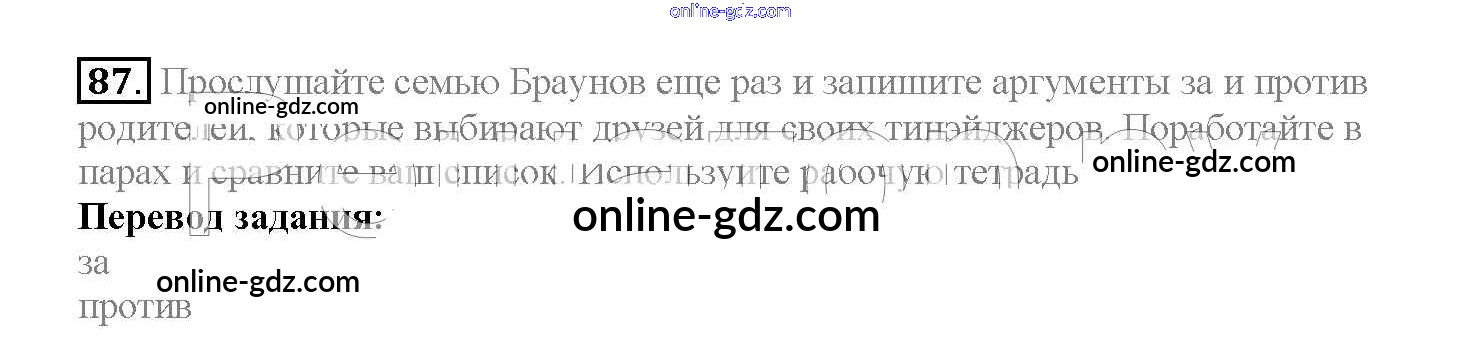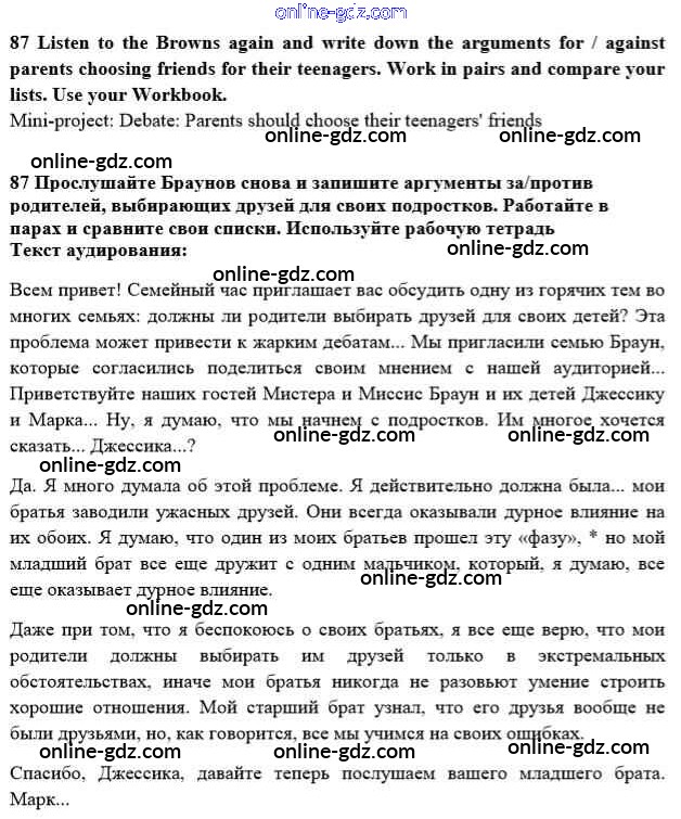 Готовые домашние задания по Английскому языку за 10 класс Учебник Биболетова, Денисенко Enjoy English 2016 - Unit 2. Talking on family matters 87