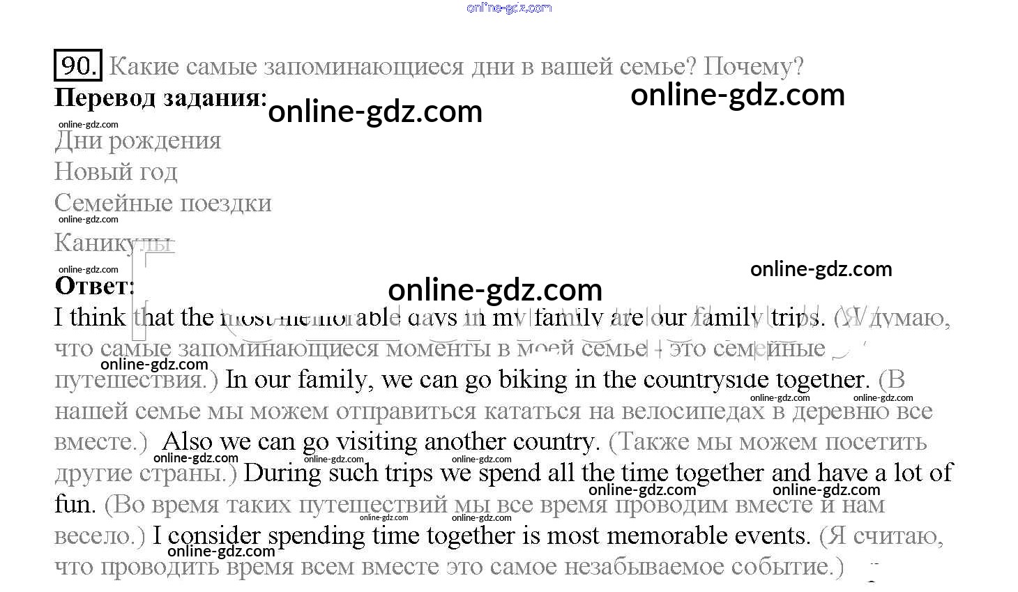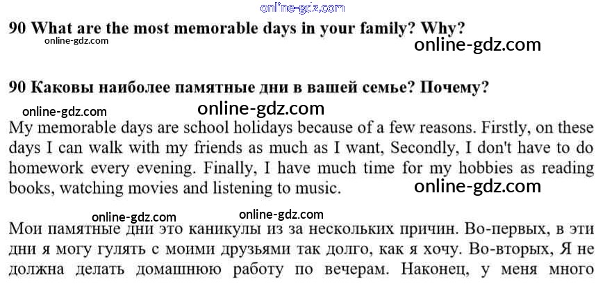 Готовые домашние задания по Английскому языку за 10 класс Учебник Биболетова, Денисенко Enjoy English 2016 - Unit 2. Talking on family matters 90