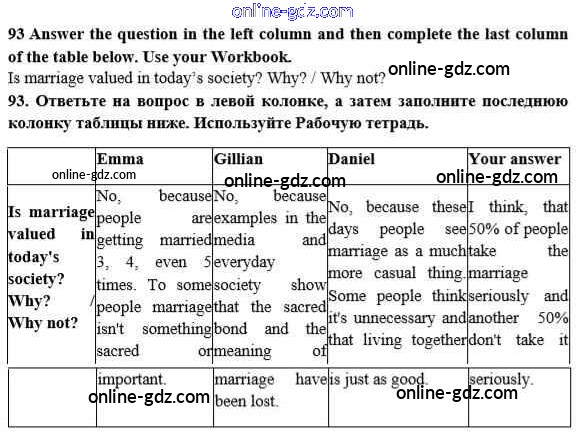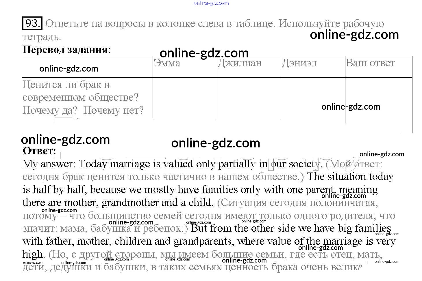 Готовые домашние задания по Английскому языку за 10 класс Учебник Биболетова, Денисенко Enjoy English 2016 - Unit 2. Talking on family matters 93