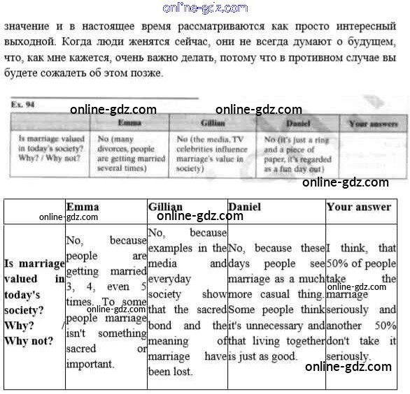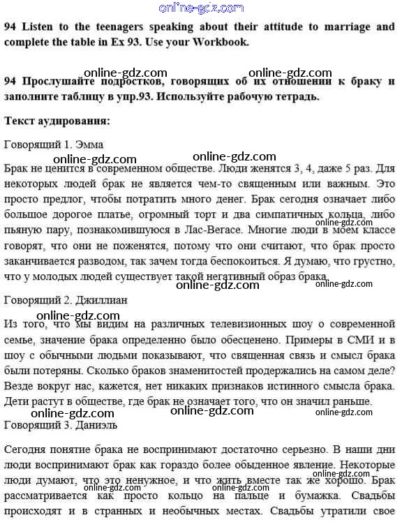 Готовые домашние задания по Английскому языку за 10 класс Учебник Биболетова, Денисенко Enjoy English 2016 - Unit 2. Talking on family matters 94