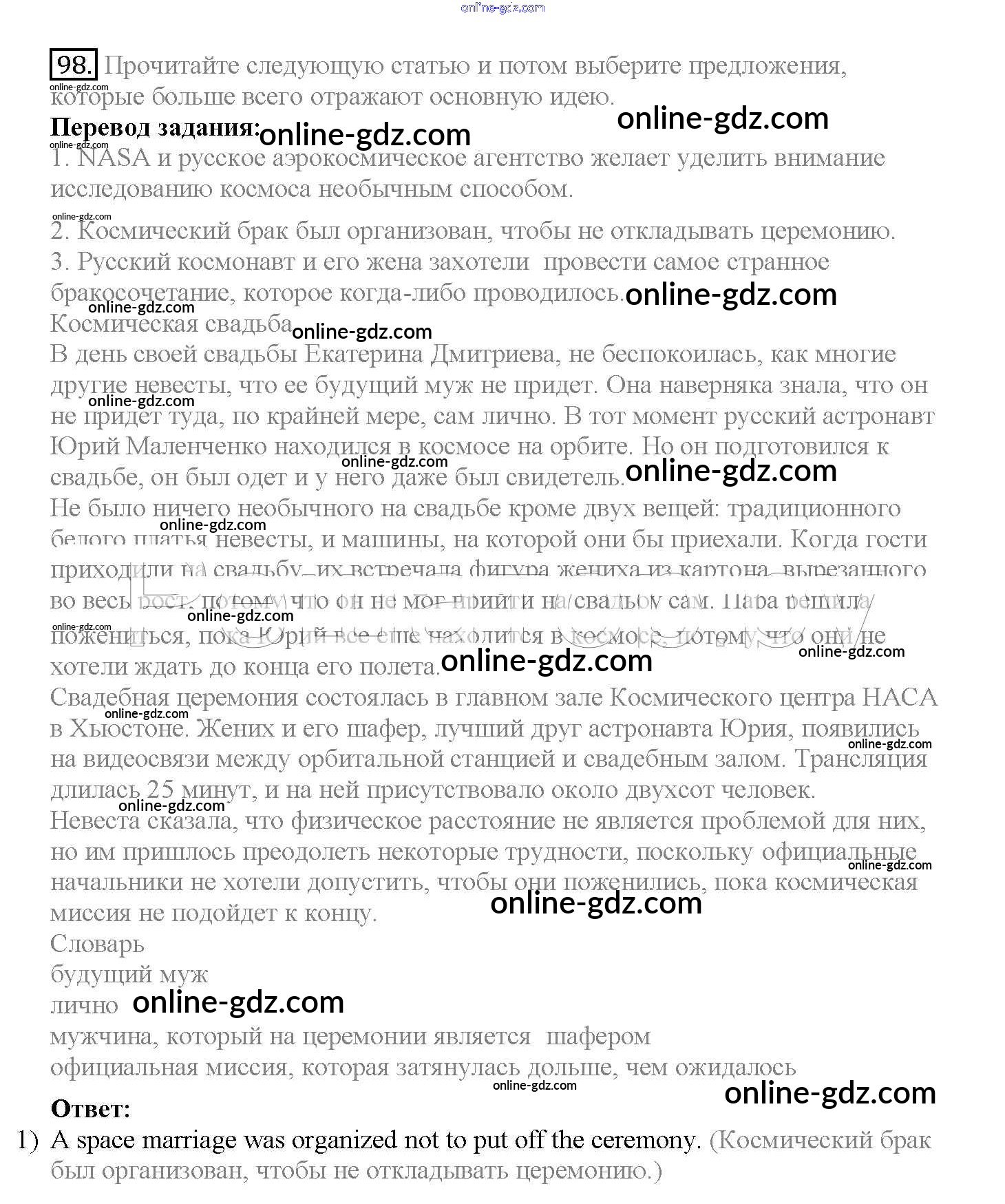 Готовые домашние задания по Английскому языку за 10 класс Учебник Биболетова, Денисенко Enjoy English 2016 - Unit 2. Talking on family matters 98