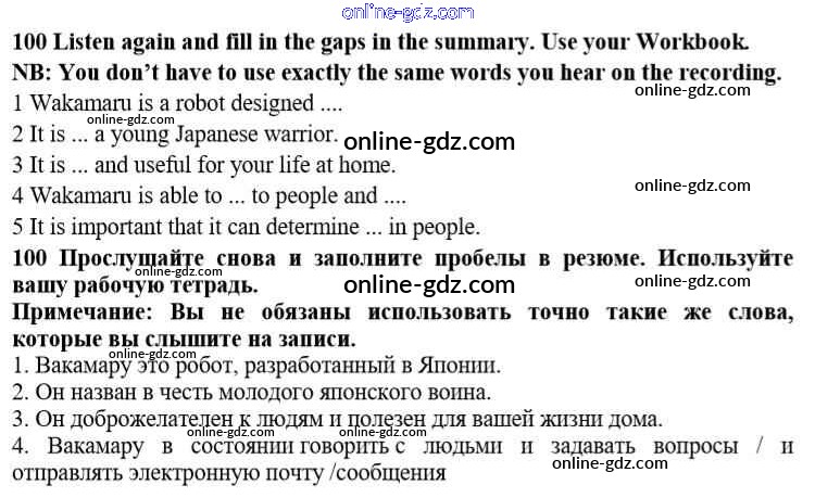 Готовые домашние задания по Английскому языку за 10 класс Учебник Биболетова, Денисенко Enjoy English 2016 - Unit 3. Civilisation and progress 100