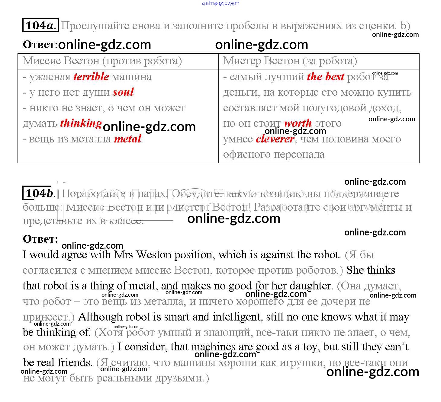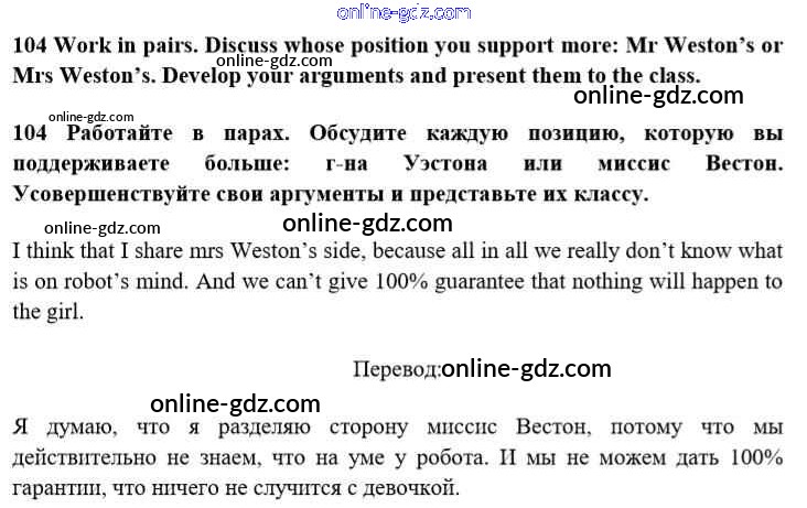 Готовые домашние задания по Английскому языку за 10 класс Учебник Биболетова, Денисенко Enjoy English 2016 - Unit 3. Civilisation and progress 104