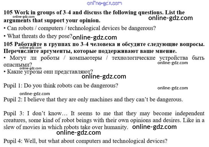 Готовые домашние задания по Английскому языку за 10 класс Учебник Биболетова, Денисенко Enjoy English 2016 - Unit 3. Civilisation and progress 105