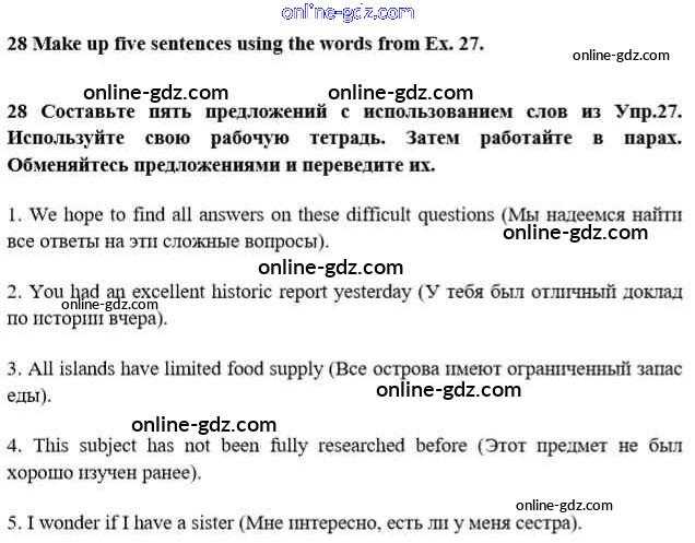 Готовые домашние задания по Английскому языку за 10 класс Учебник Биболетова, Денисенко Enjoy English 2016 - Unit 3. Civilisation and progress 28