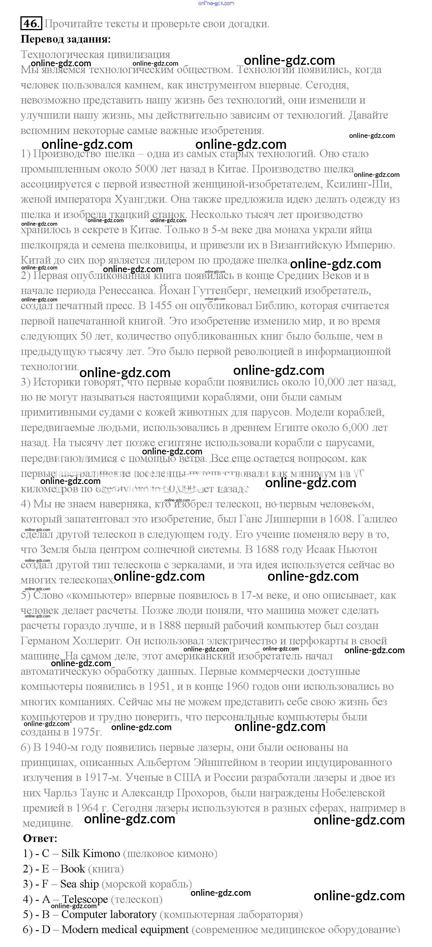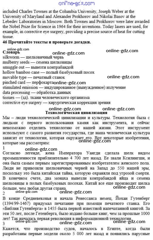 Готовые домашние задания по Английскому языку за 10 класс Учебник Биболетова, Денисенко Enjoy English 2016 - Unit 3. Civilisation and progress 46