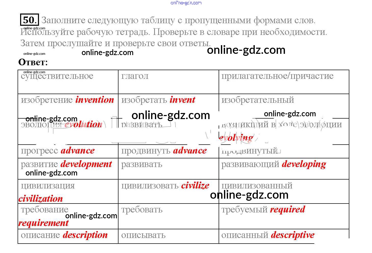 Готовые домашние задания по Английскому языку за 10 класс Учебник Биболетова, Денисенко Enjoy English 2016 - Unit 3. Civilisation and progress 50