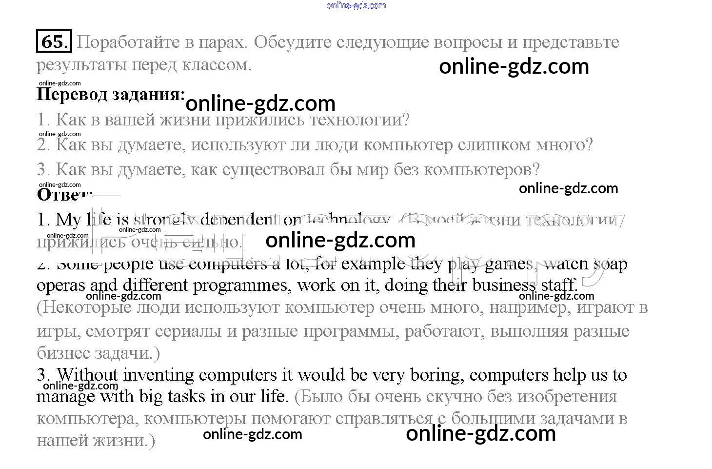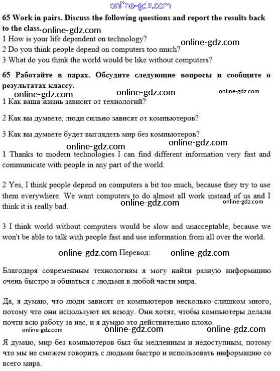 Готовые домашние задания по Английскому языку за 10 класс Учебник Биболетова, Денисенко Enjoy English 2016 - Unit 3. Civilisation and progress 65