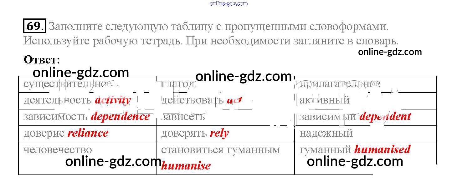 Готовые домашние задания по Английскому языку за 10 класс Учебник Биболетова, Денисенко Enjoy English 2016 - Unit 3. Civilisation and progress 69
