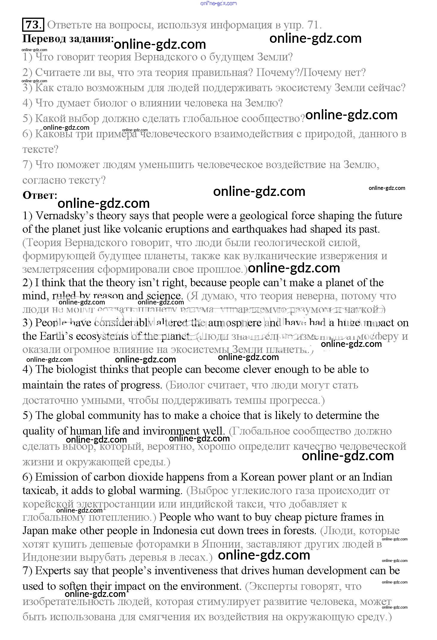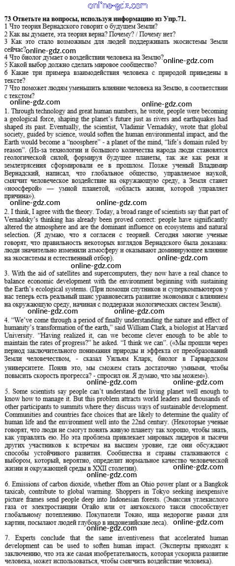Готовые домашние задания по Английскому языку за 10 класс Учебник Биболетова, Денисенко Enjoy English 2016 - Unit 3. Civilisation and progress 73