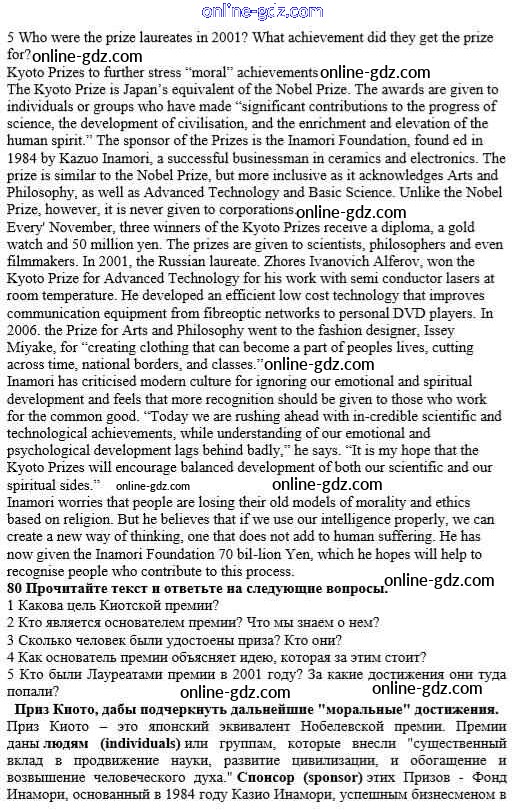 Готовые домашние задания по Английскому языку за 10 класс Учебник Биболетова, Денисенко Enjoy English 2016 - Unit 3. Civilisation and progress 80
