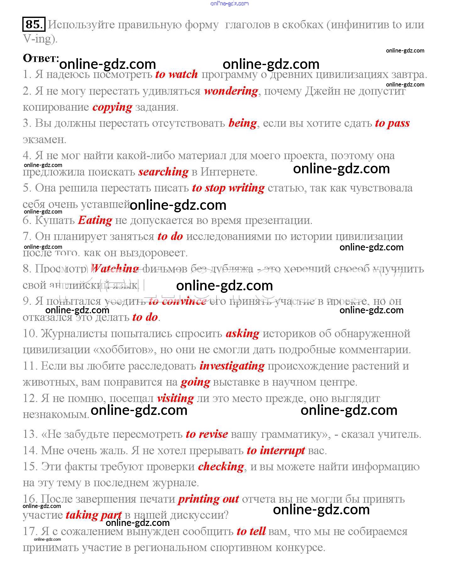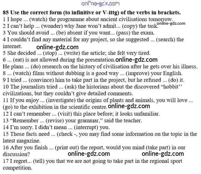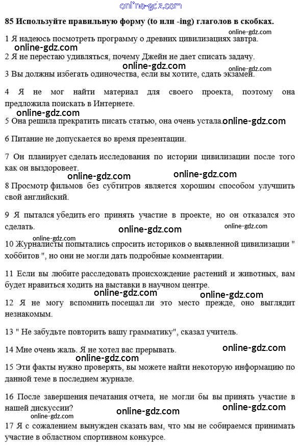 Готовые домашние задания по Английскому языку за 10 класс Учебник Биболетова, Денисенко Enjoy English 2016 - Unit 3. Civilisation and progress 85