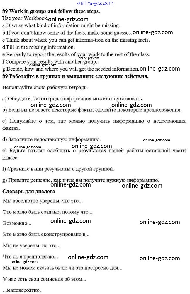 Готовые домашние задания по Английскому языку за 10 класс Учебник Биболетова, Денисенко Enjoy English 2016 - Unit 3. Civilisation and progress 89