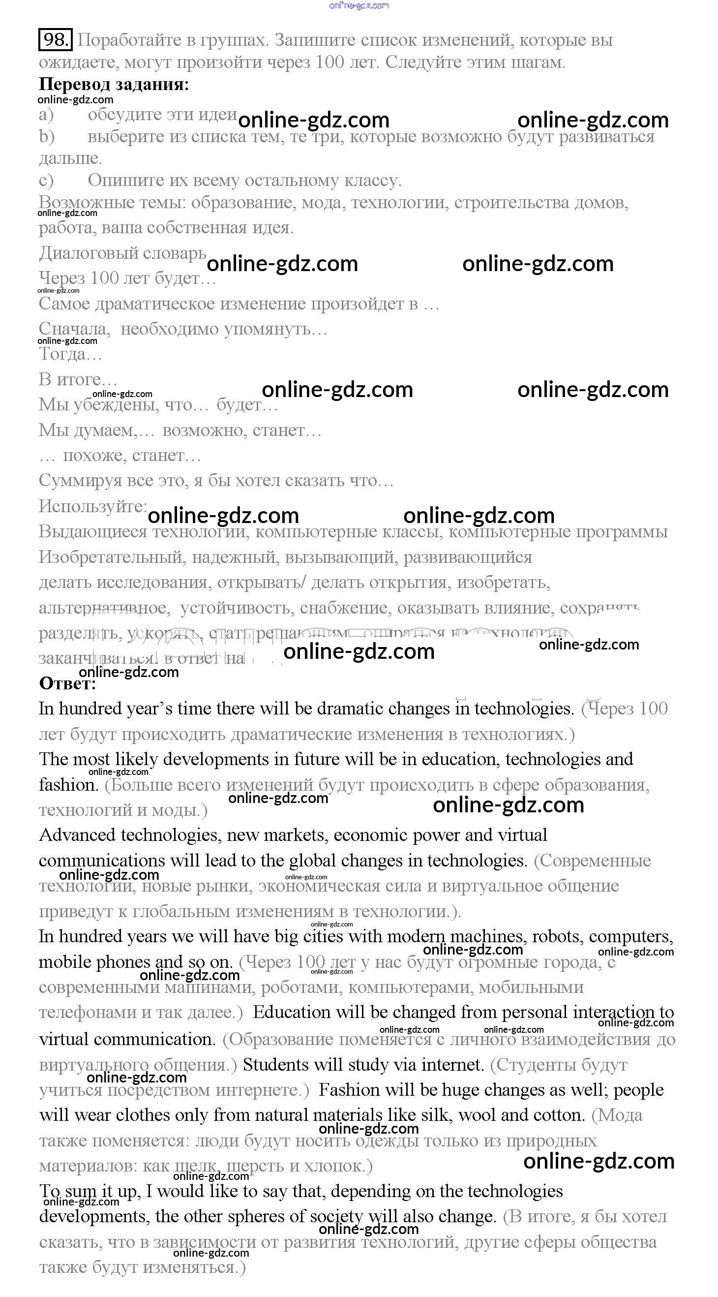 Готовые домашние задания по Английскому языку за 10 класс Учебник Биболетова, Денисенко Enjoy English 2016 - Unit 3. Civilisation and progress 98