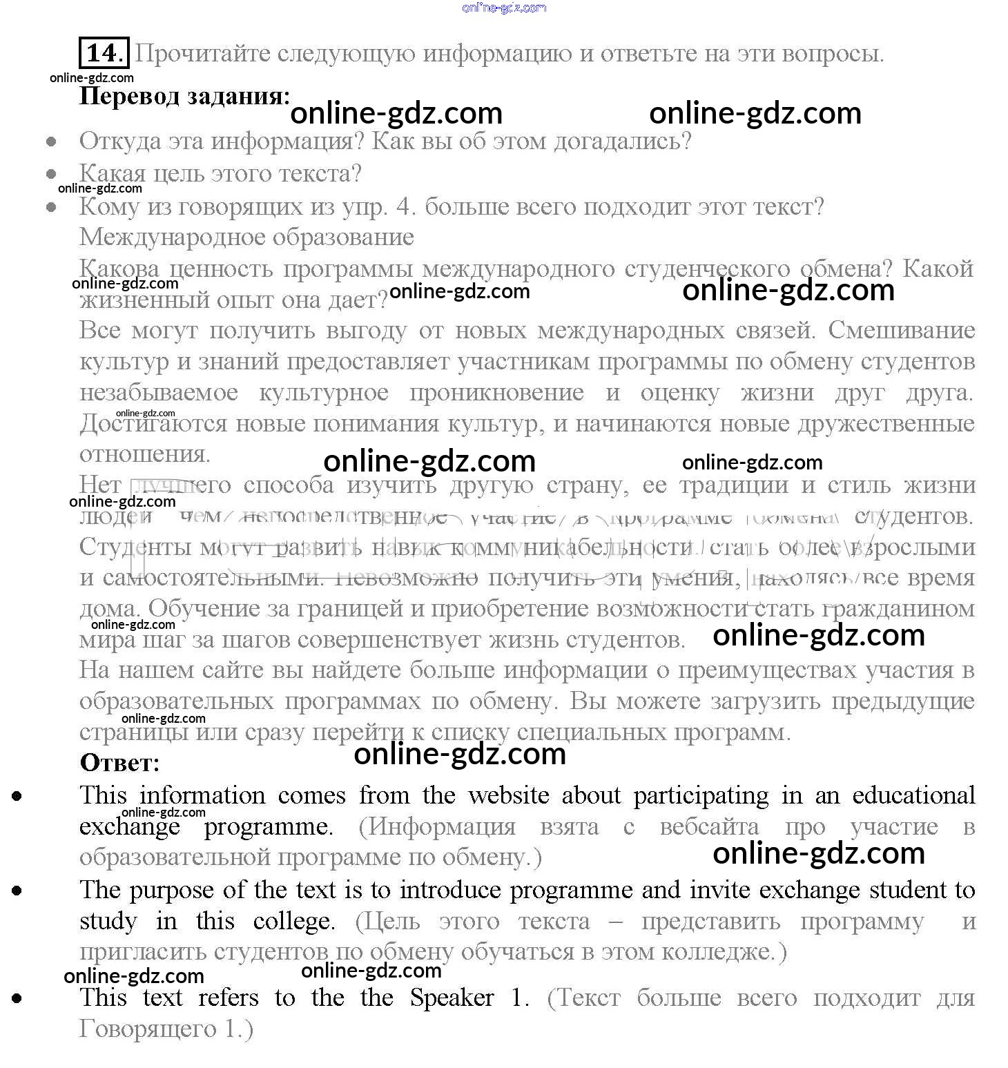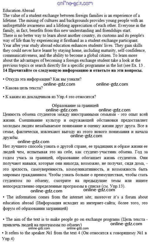 Готовые домашние задания по Английскому языку за 10 класс Учебник Биболетова, Денисенко Enjoy English 2016 - Unit 4. The world of opportunities 14