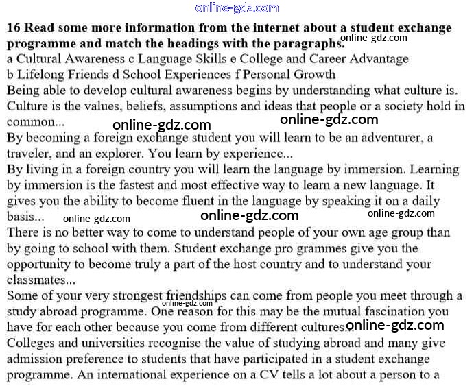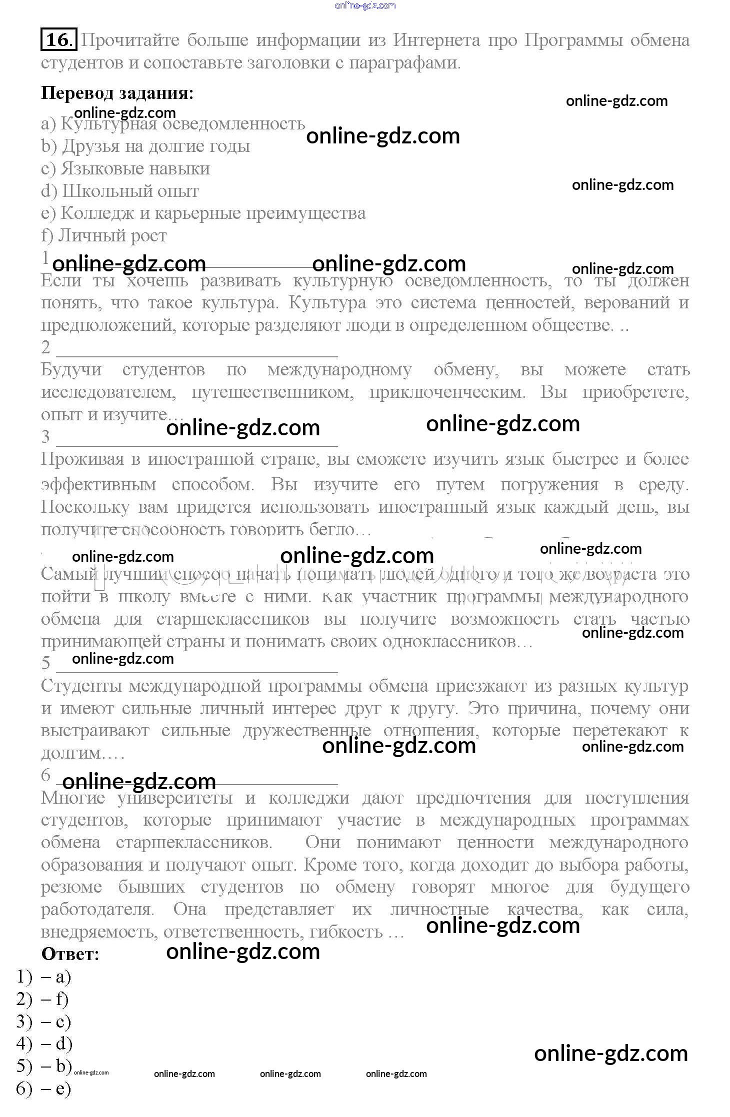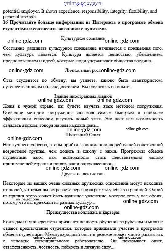 Готовые домашние задания по Английскому языку за 10 класс Учебник Биболетова, Денисенко Enjoy English 2016 - Unit 4. The world of opportunities 16