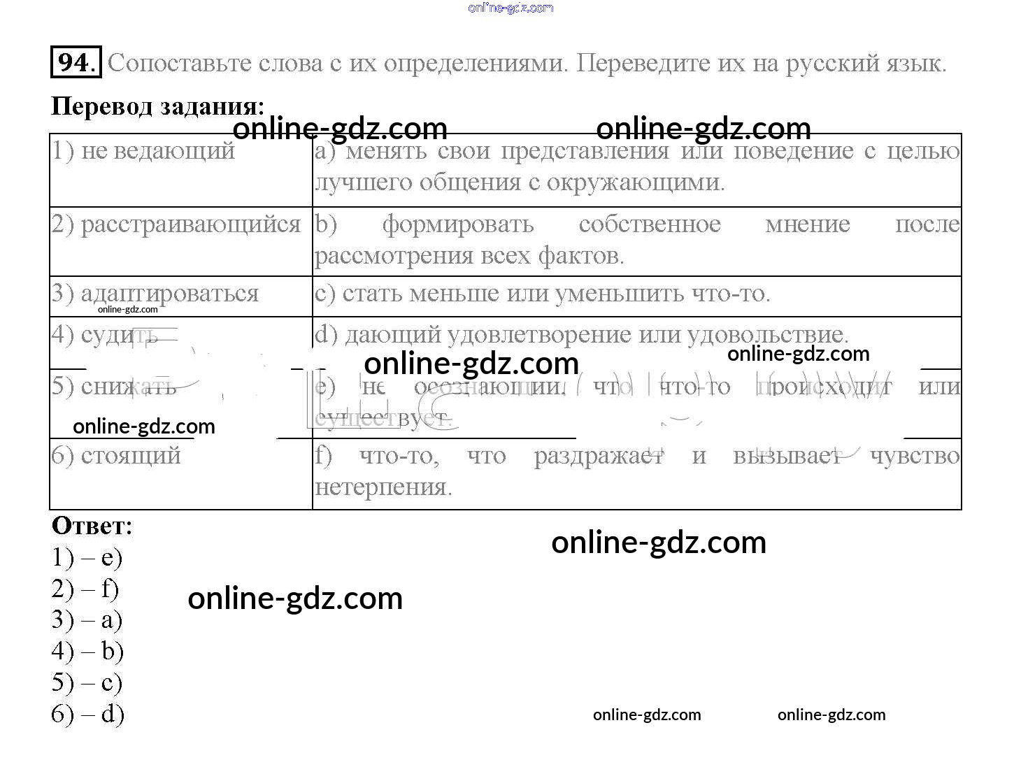Готовые домашние задания по Английскому языку за 10 класс Учебник Биболетова, Денисенко Enjoy English 2016 - Unit 4. The world of opportunities 94