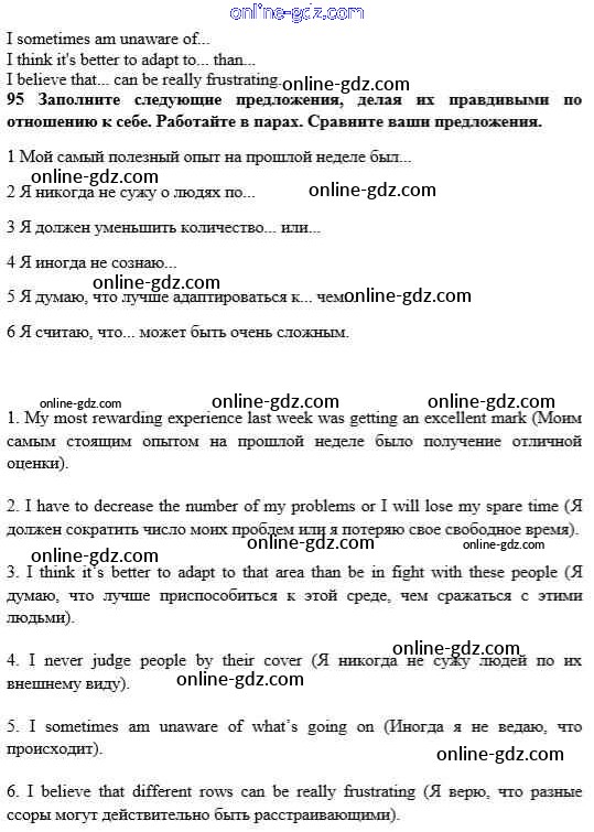 Готовые домашние задания по Английскому языку за 10 класс Учебник Биболетова, Денисенко Enjoy English 2016 - Unit 4. The world of opportunities 95