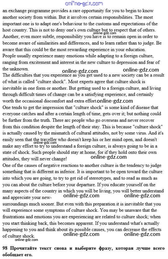 Готовые домашние задания по Английскому языку за 10 класс Учебник Биболетова, Денисенко Enjoy English 2016 - Unit 4. The world of opportunities 98
