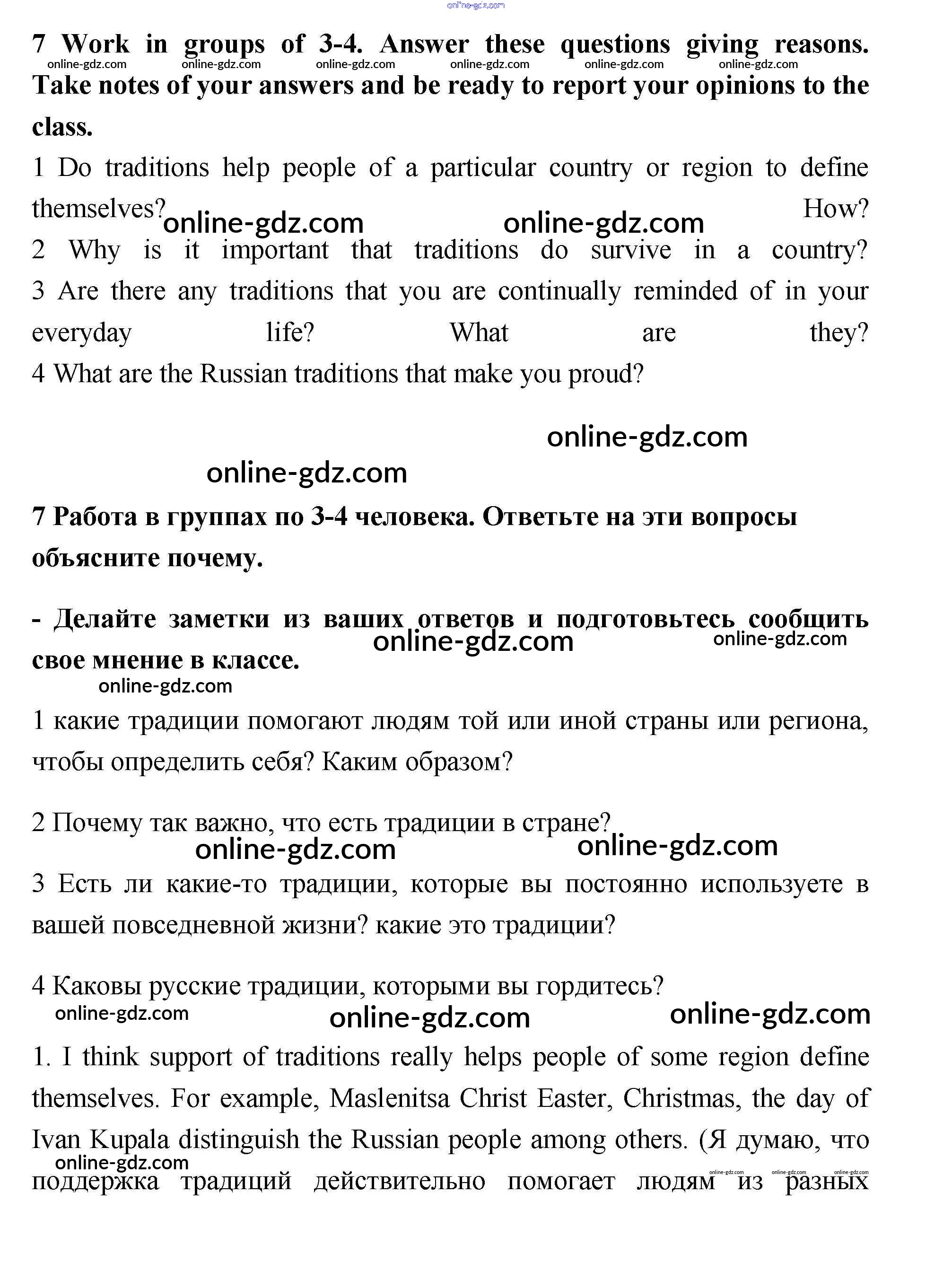 Готовые домашние задания по Английскому языку за 10 класс Учебник Гроза, Дворецкая New Millennium 2014 - Уроки 1-2 Unit 3. A time to celebrate 7