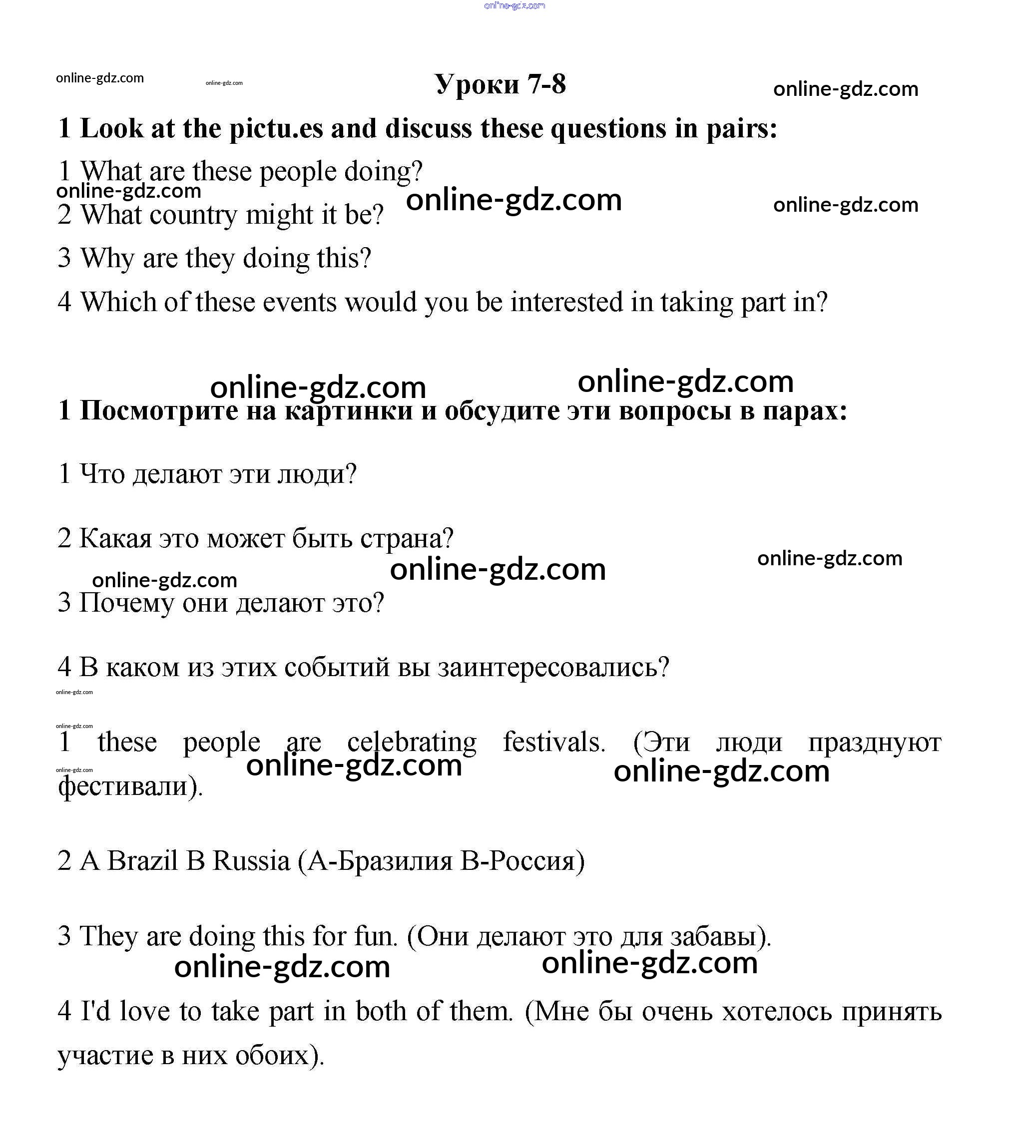 Готовые домашние задания по Английскому языку за 10 класс Учебник Гроза, Дворецкая New Millennium 2014 - Уроки 7-8 Unit 3. A time to celebrate 1