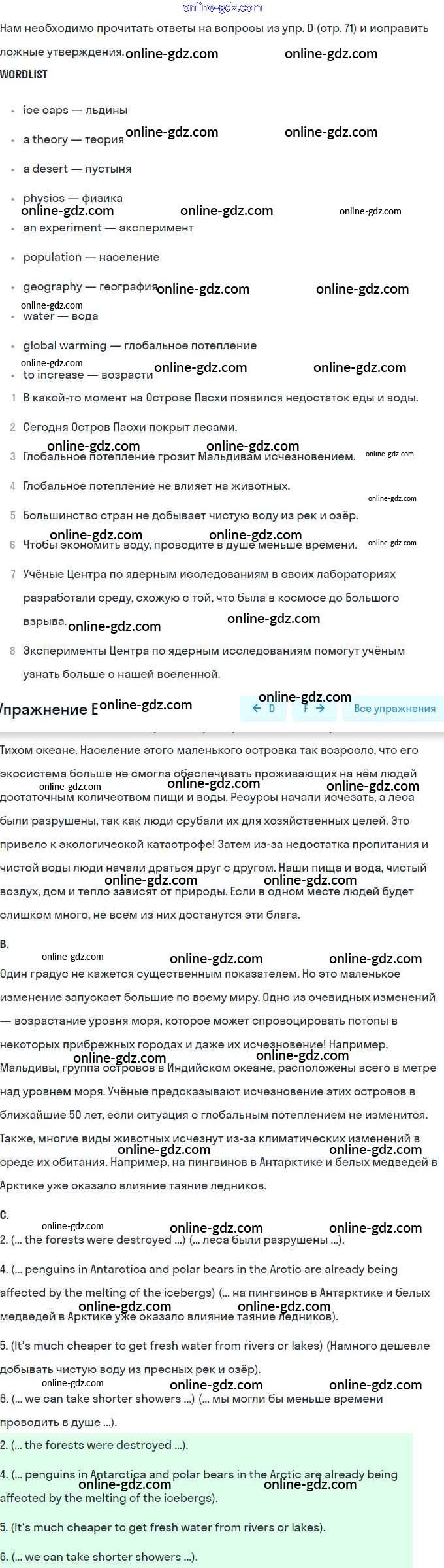Готовые домашние задания по Английскому языку за 10 класс Учебник Комарова, Ларионова Инновационная школа Базовый уровень 2018 - Страницы 71