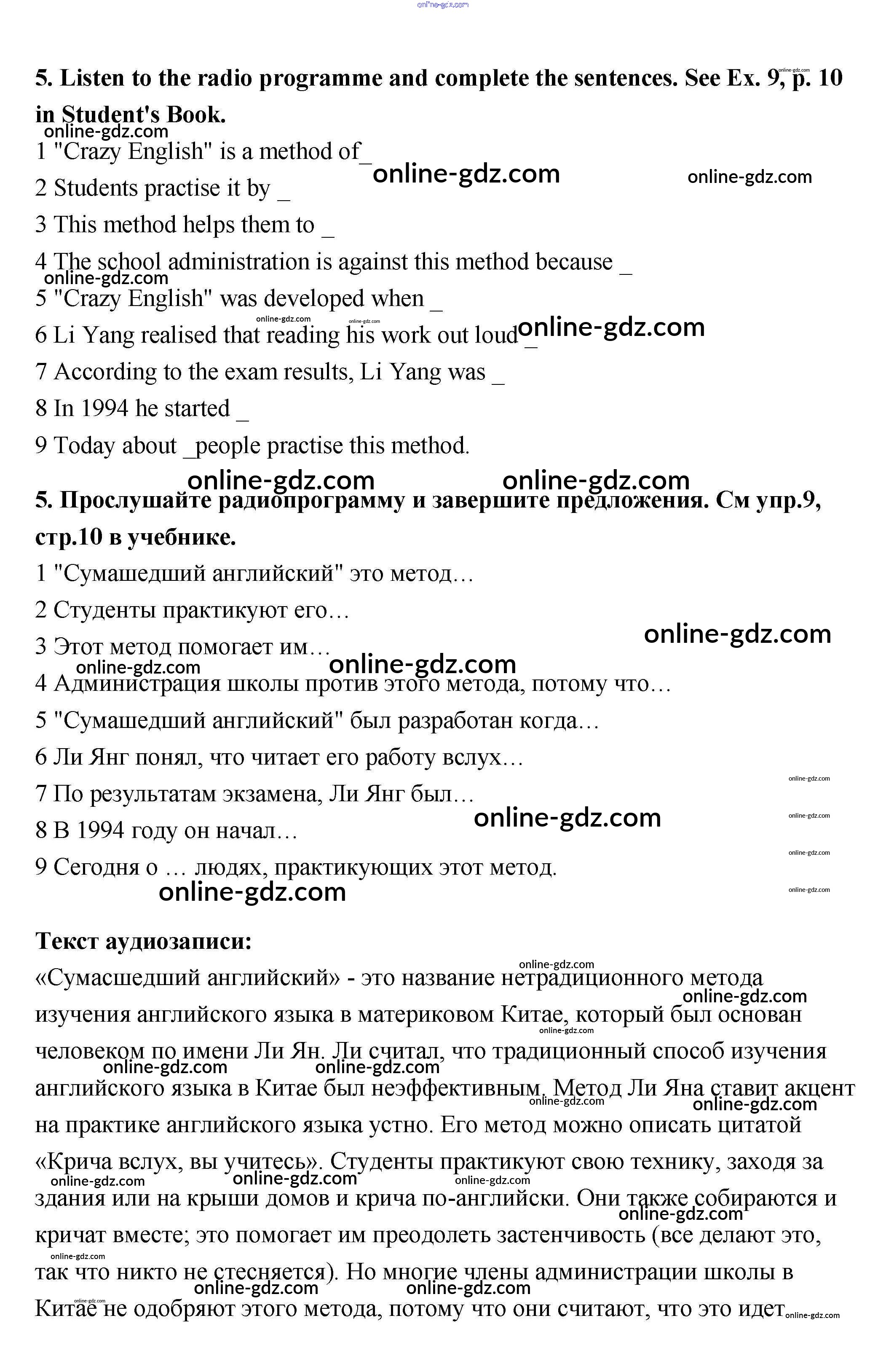 Готовые домашние задания по Английскому языку за 11 класс Рабочая тетрадь Биболетова, Трубанева Enjoy English 2013 - Section 1 Unit 1. What do young people face in society today? 5