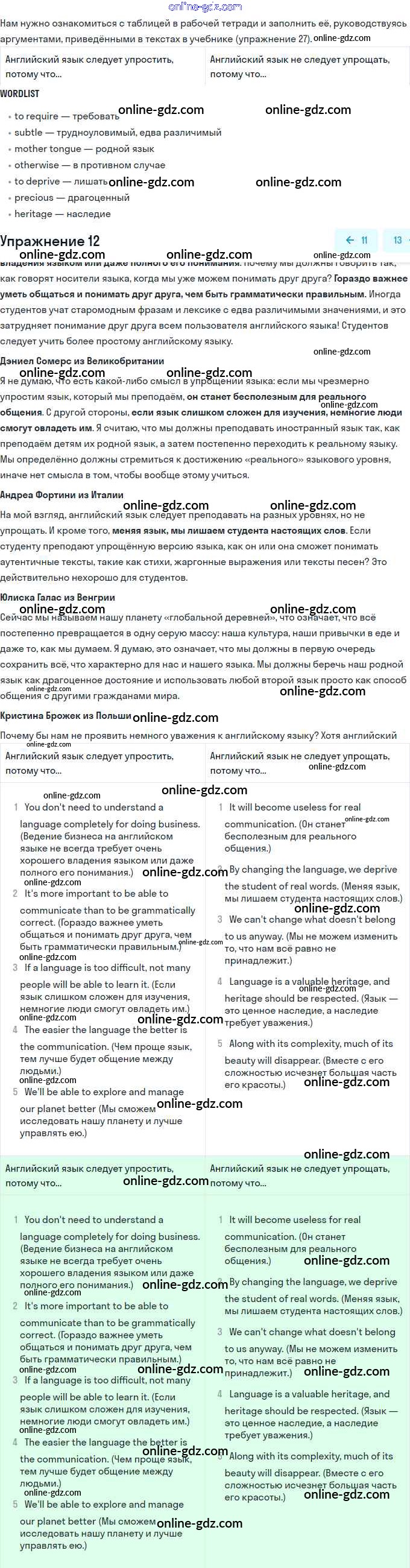 Готовые домашние задания по Английскому языку за 11 класс Рабочая тетрадь Биболетова, Бабушис Enjoy English 2017 - Section 1 Unit 1. Young people in society 12