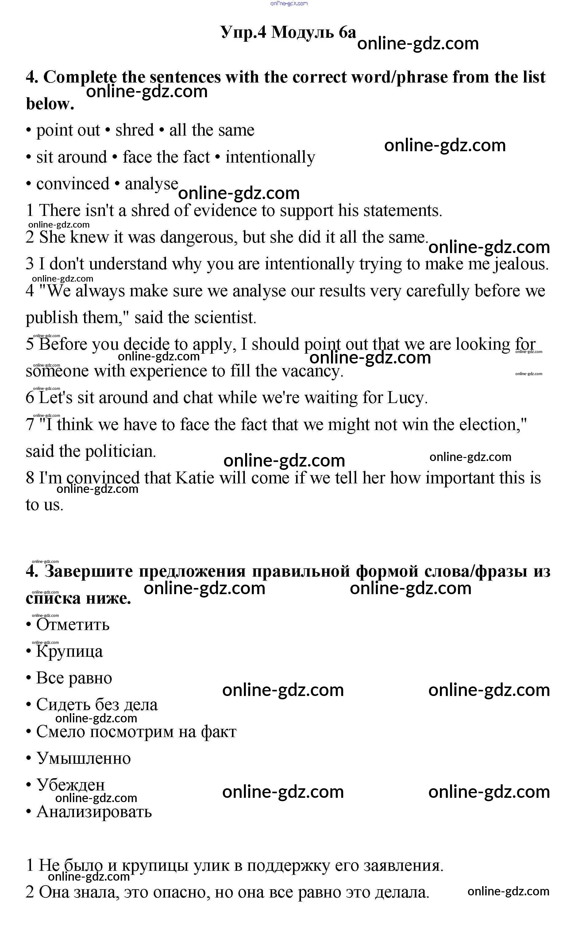 Готовые домашние задания по Английскому языку за 11 класс Рабочая тетрадь Эванс, Афанасьева Spotlight 2015 - Часть 6a Module 6 4