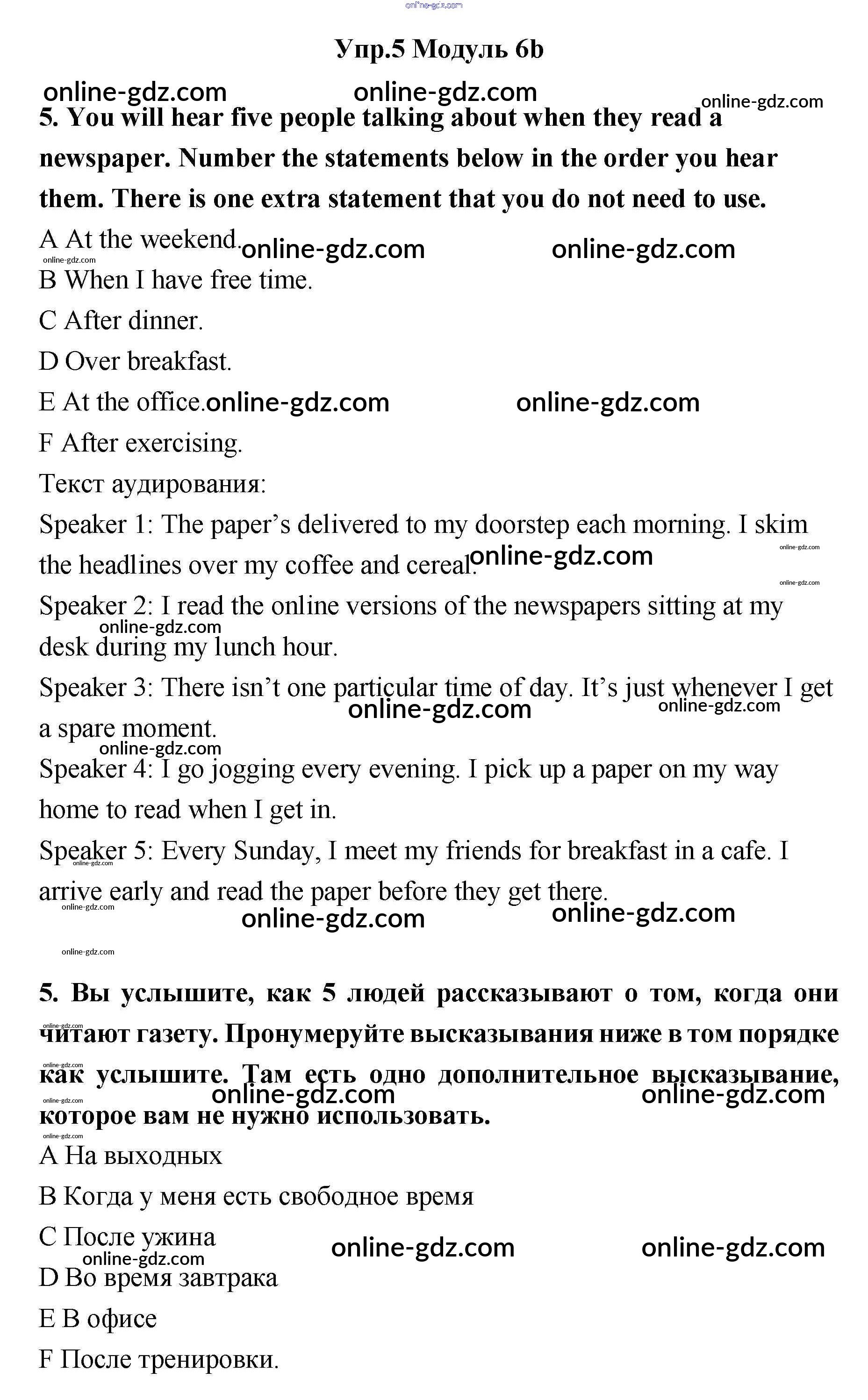 Готовые домашние задания по Английскому языку за 11 класс Рабочая тетрадь Эванс, Афанасьева Spotlight 2015 - Часть 6b Module 6 5