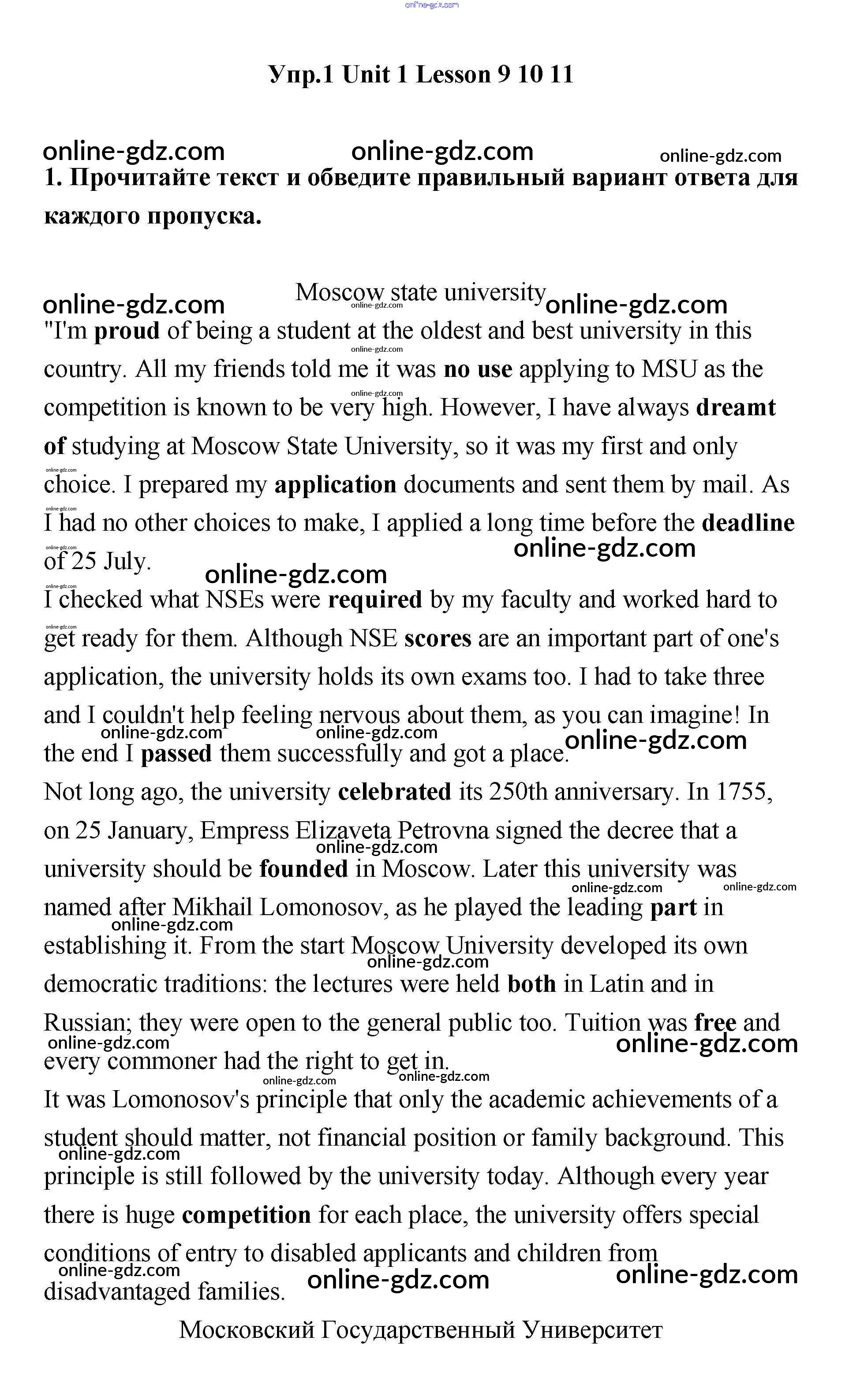 Готовые домашние задания по Английскому языку за 11 класс Рабочая тетрадь Кауфман Happy English 2014 - Lesson 9, 10, 11 Unit 1 1